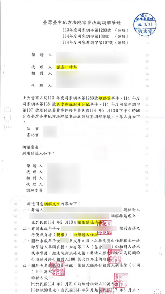 此外,考量雙方未來仍需各自展開新生活,妻子既已在關鍵條件上讓步,小奕同意撤回對妻子妨害秘密的刑事告訴,作為談判籌碼,徹底終結雙方的法律糾紛。最終,雙方在調解階段即妥善解決所有爭議,順利走出法院,為彼此的人生翻開新的篇章。
