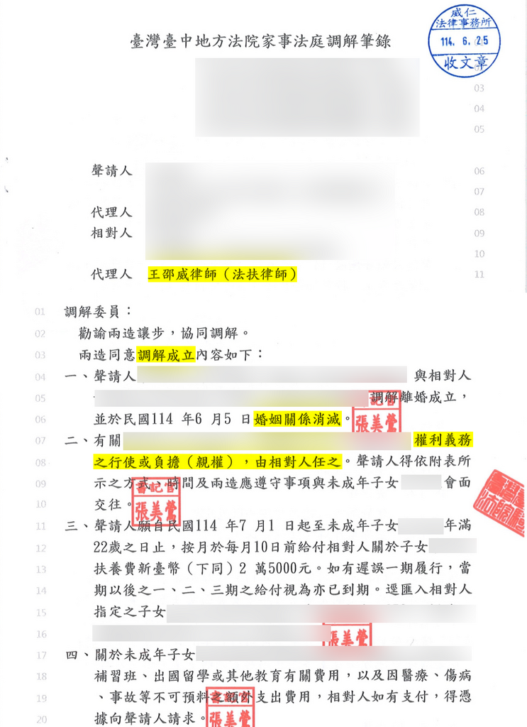 這場調解的結果,不僅保障了小穎的基本生活,更將孩子未來的高等教育開支納入周全考量。離婚案件的核心往往不在於爭論過往的誰對誰錯,而在於如何透過法律佈局,讓當事人在結束一段關係後能快速回歸生活正軌。獲得這份全方位的保障後,小穎終於能放下心中的執著與不甘,帶著勇氣與孩子展開充滿希望的新生活。
